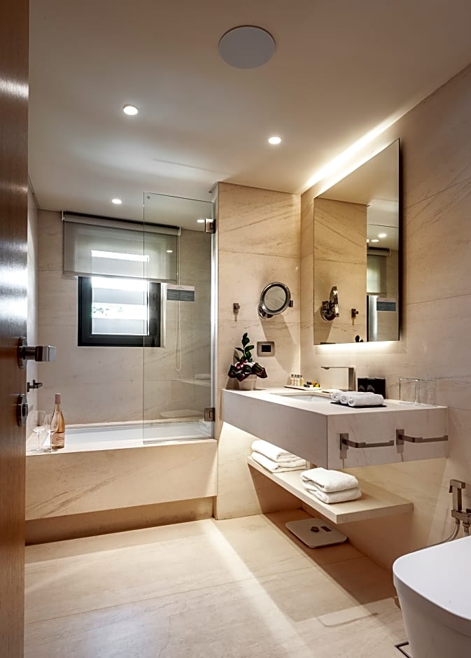 Spacious suite with free WiFi, work desk, flat-screen TV, fully stocked mini-bar, free tea-and-coffee-making facilities and bathrobes. It also features a balcony and hot tub.